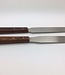 Roestvrij stalen spatel met 1 rechte en en 1 gebogen kant. 24,5 cm lang, 3,5 cm breed (breedste deel van spatel). Donker houten handvat.